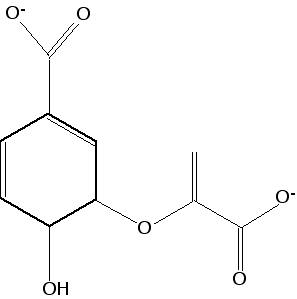 | This molecule is derived from shikimate and can be converted into intermediates that lead in two steps to either phenylalanine or tyrosine; a somewhat longer pathway leads to tryptophan. | |